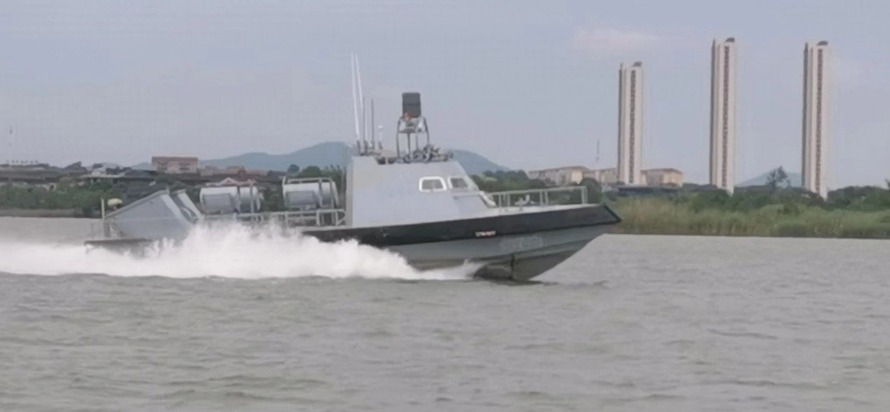 该艇由太阳成集团tyc122ccvip与鱼鹰科技(全资子公司)、天海防务、泰州金海运及相关院校于2021年5月开始研发,由泰州金海运建造,2022年5月到达湖试基地进行测试。经过湖泊试验,该艇航速达到30余节,自主路径规划、多艇协同控制、电子防御等性能基本达到设计要求。